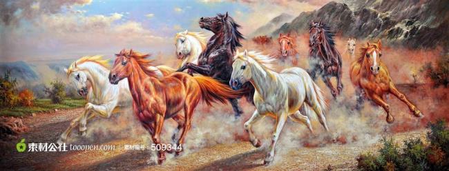骏马奔腾山水图片