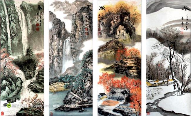 春夏秋冬四条屏四季山水图片