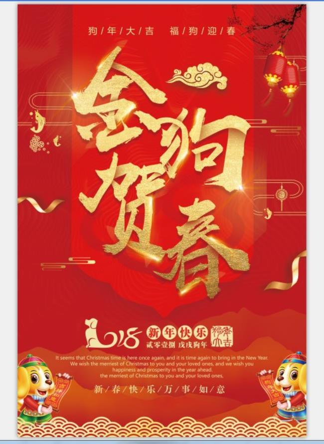 大气红金色2018金狗贺春春节海报模板